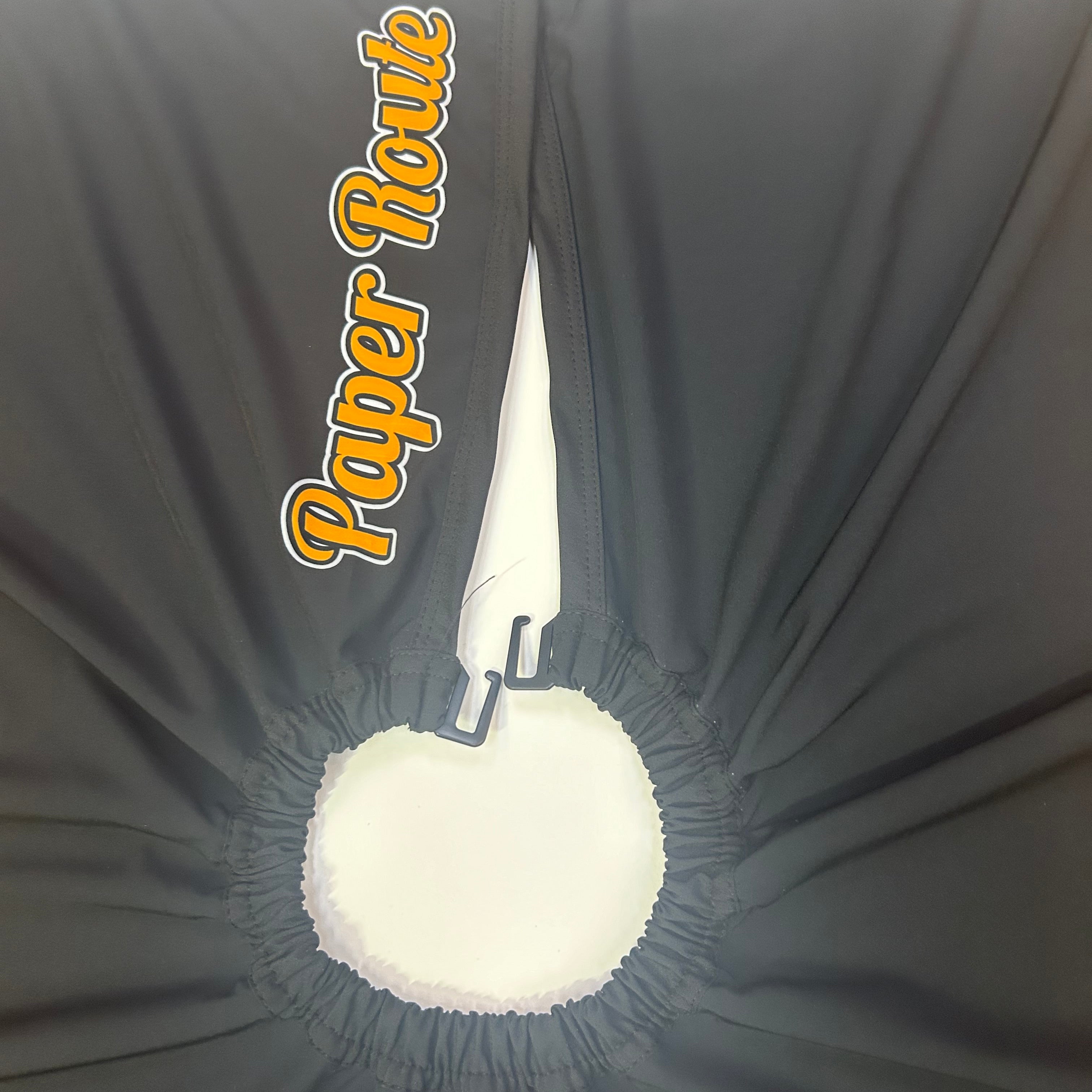 Our capes are larger for maximum coverage and protection made with creative designs and vibrant colors using sublimation so no fading and the material is premium and lightweight for extreme comfort .