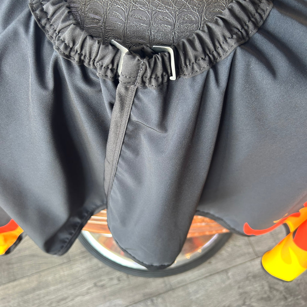 Our capes are larger for maximum coverage and protection made with creative designs and vibrant colors using sublimation so no fading and the material is premium and lightweight for extreme comfort .